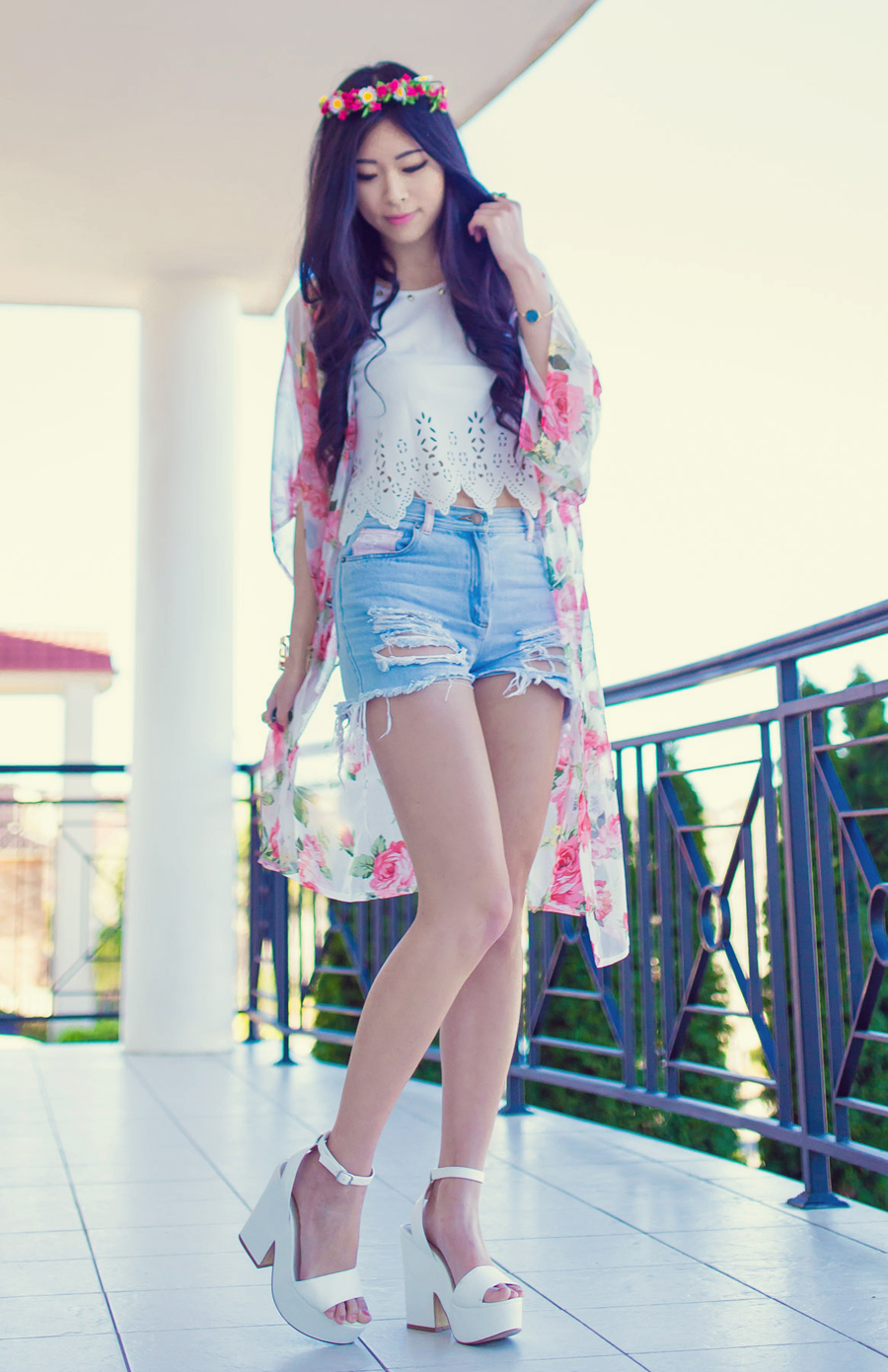 I paired the kimono with a new top kindly gifted from Chictopia Shop as well. I'm sure a lot of you guys have posted looks on Chictopia before (an online style community to show off your looks!) but have you checked out their shop before? :) I found this adorable crop top there at only $21 with free shipping- such a steal! I love the intricate perforations and scalloped hem design. Another great spring piece that looks perfect paired with denim cut offs for a breezy casual look :)